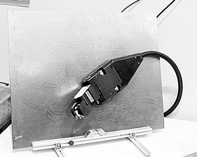 在展臺上,記者看到一個像壁虎一樣吸附在鐵板上爬行的機器,不禁問道:它能干什么?